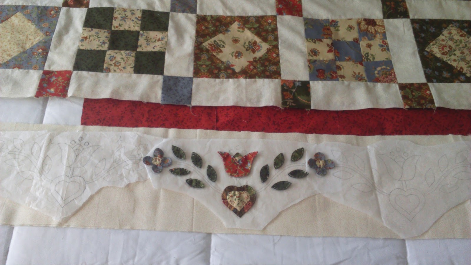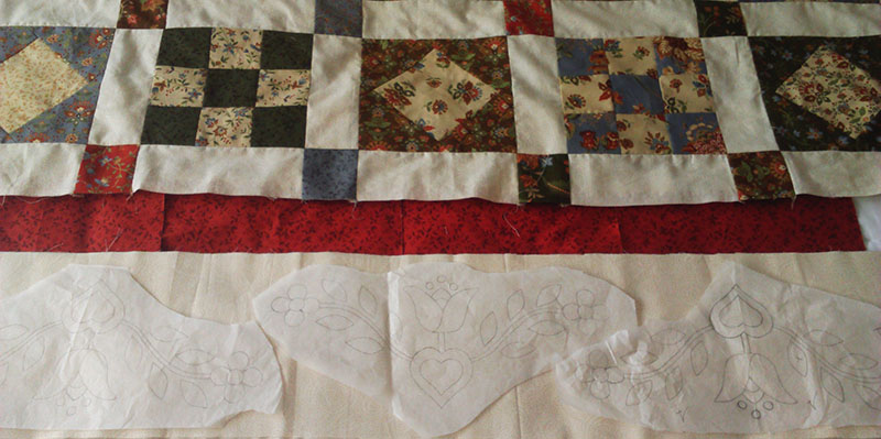 Después seguí con las aplicaciones para coser en los bordes de la colcha, aun mas interminable si cabe el trabajo que con los bloques, muchísimo mas!!!