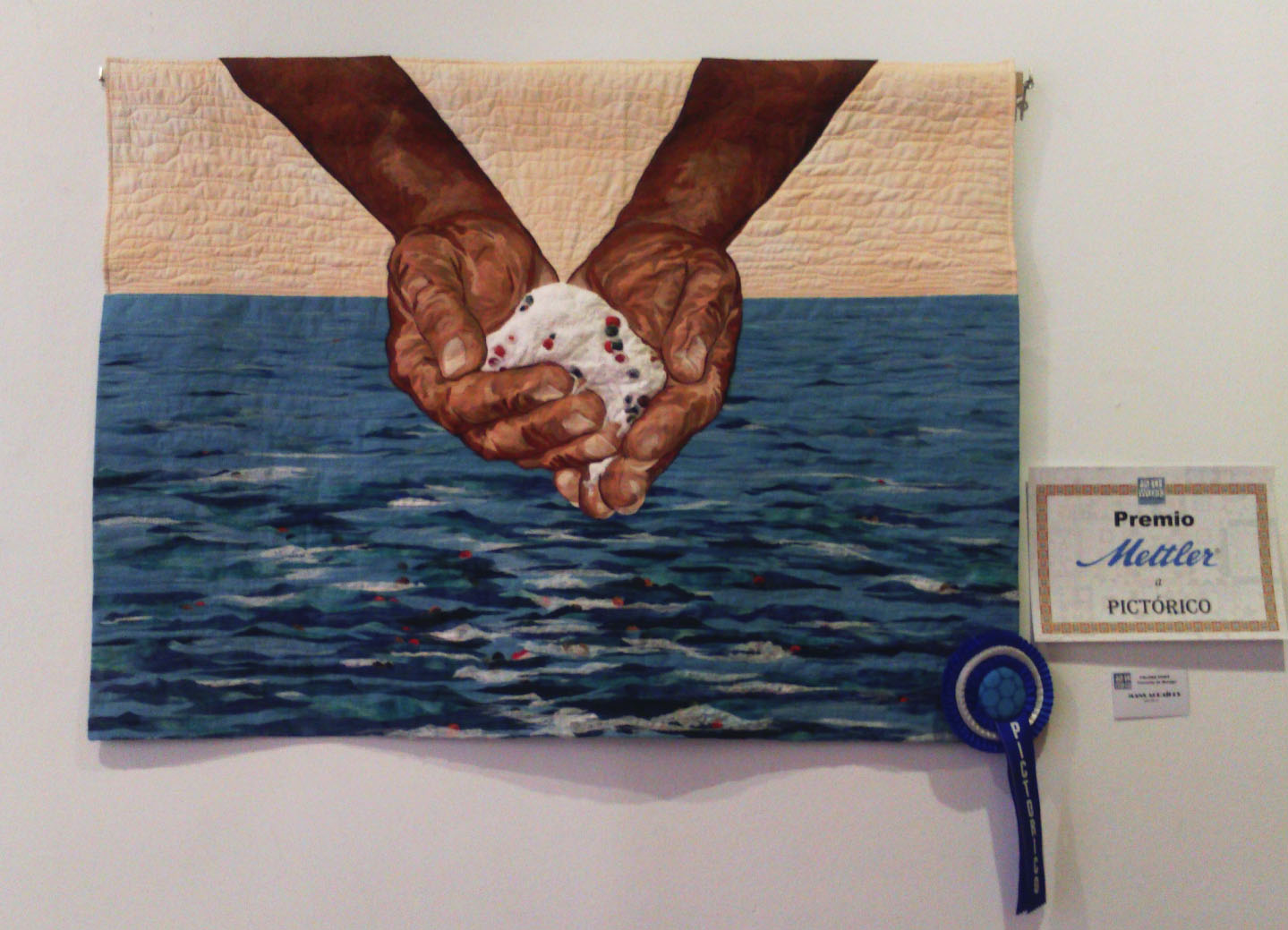 Entonces fue cuando pensé como resolver este problema y pensé en acolcharla a máquina, pero tenía que ser por la mejor quilter que conozco, y saber si estaba dispuesta a hacer el trabajo, y la contestación fue positiva, un SI, y en el tiempo récord para poder llevarla a la Exposición -Concurso de Castell D´Aro, no me lo podía creer!!!